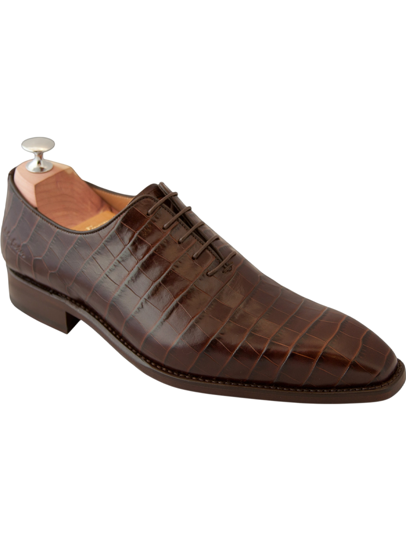 Chaussures en cuir marron, aux finitions superbes, le beau n’a aucune limite.